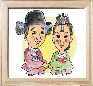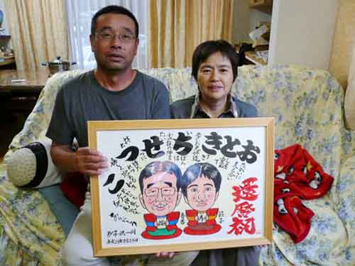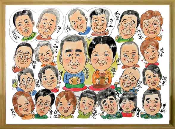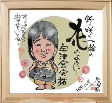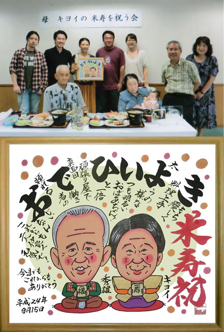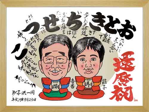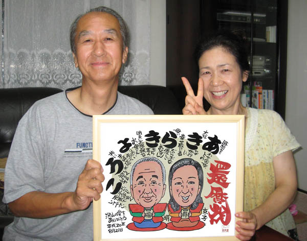 ↑實様・寿代子様ご夫婦の名前遊書似顔絵です。