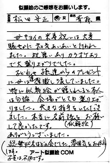 おじいちゃん、おばあちゃんの還暦祝い、米寿祝い等に子供たち
