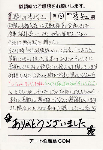 駒田様より嬉しいお便りを戴きました。 ![]() |